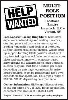 NOW HIRING: Full-time driver/laborer, for Elite Fencing LLC company, starting rates at $25 per hour, $50,000-$60,000 yearly income. Call for interview 518-867-1780.