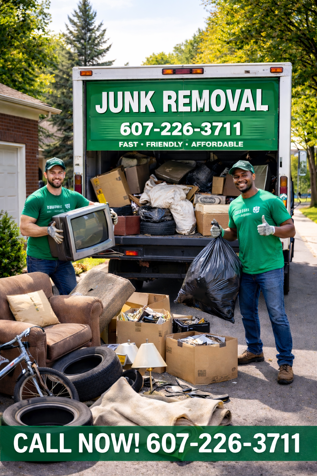 JUNK REMOVAL – FAST & AFFORDABLE Need junk gone? We haul it all! ? Furniture ? Appliances ? Mattresses ? Yard waste ? Garage clean-outs ? Construction debris No job too big or small. Same-day service available. ? Call or Text: 607-226-3711 Fast • Reliable • Affordable Serving local areas. Send a picture of your junk for a quick quote!